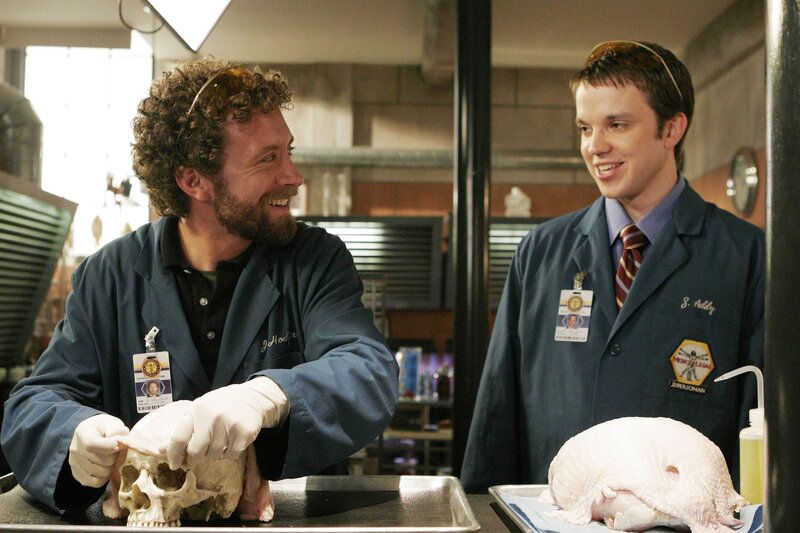 Hodgins (TJ Thyne, li.) und Zach (Eric Millegan) können bei den forensischen Untersuchungen im Mordfall Manning einen Erfolg verzeichnen. +++