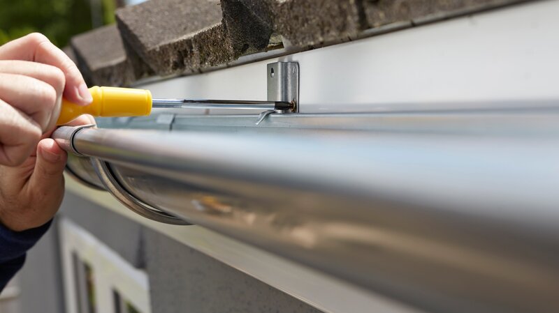 Close Up Of Man Replacing Guttering On Exterior Of House
