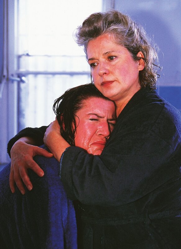 Walter (Katy Karrenbauer, l.) rastet aus, sie kann Vivis Verlegung nicht verkraften. Uschi (Barbara Freier) versucht sie zu trösten.
