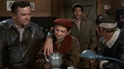 Die "Helden" haben den neuen Gefangenen in ihrer Baracke genau unter die Lupe genommen. Trotzdem sind sie auf ihn hereingefallen - Captain James Martin ist ein Spion. Als sie ihm schließlich durch einen Fehler der Deutschen auf die Schliche kommen, scheint es schon zu spät zu sein: Captain Martin kennt bereits alle Einzelheiten des nächsten Coups der "Helden". Deren Tricks aber kennt er nicht.