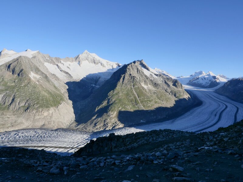 • Sonnenaufgang über dem Aletschgletscher auf dem Eggishorn.