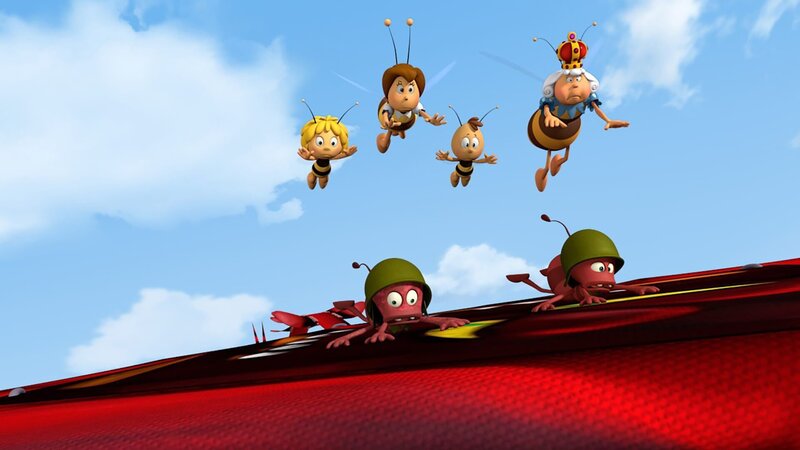 Das Sonnenbad der Königin wird durch einen seltsamen Umstand erschwert: Auf ihrer Terrasse gibt es an diesem Morgen keine Sonne. In den Zweigen über der Terrasse hängt etwas Großes, aber was? Es ist rot, hat einen langen Schwanz und versperrt die Sicht. Für die Insekten eindeutig ein Monster! Bis auf weiteres darf niemand den Bienenstock verlassen. Maja möchte der Sache auf den Grund gehen und bittet Paul um Hilfe. Emil und Egon melden sich freiwillig. Doch auf dem Weg zum Monster wird schnell klar, dass die beiden Ameisen nicht zugehört haben und überhaupt nicht wissen, wobei sie Maja eigentlich unterstützen sollen. Während Emil Angst vor Monstern hat, fällt Egon auf dem Weg in den Eichenbaum ein, dass er gegen Eichen allergisch ist. Die zwei sind also keine große Hilfe. Gerade als ein Windstoß kommt und das "Monster" mitnimmt, sitzen Emil und Egon auf dem Schwanz des Ungetüms und werden mit in die Lüfte genommen. Maja versucht sie zu retten und erhält Hilfe von der Königin, Willi und Frau Kassandra. Doch das Monster, das ein Drache ist, fliegt so hoch in die Wolken, dass die Vier aufgeben müssen. Zum Glück läuft gerade in dem Moment, als die zwei Ameisen wieder aus den Wolken fallen, Kurt mit seiner Mistkugel vorbei. Ihr Sturz wird abgefedert, und außer dem Ball ist niemand verletzt.