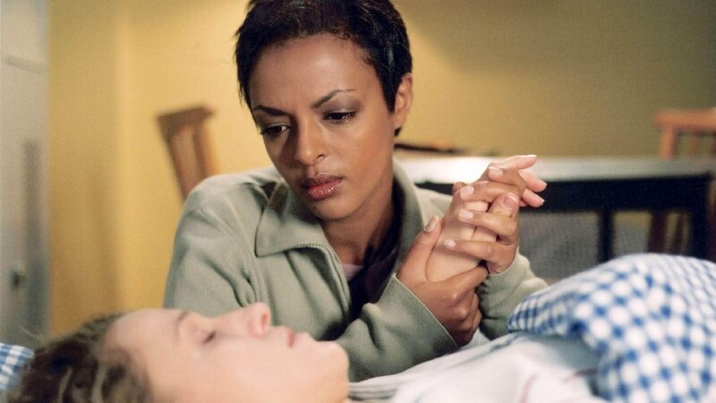 Wilhelmina (Dennenesch Zoude) verabschiedet sich von Nik (Solveig August, lieg.), die im Sterben liegt.
