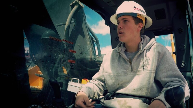 Todd Hoffman fires the washplant up, Hunter Hoffman waits next to him.