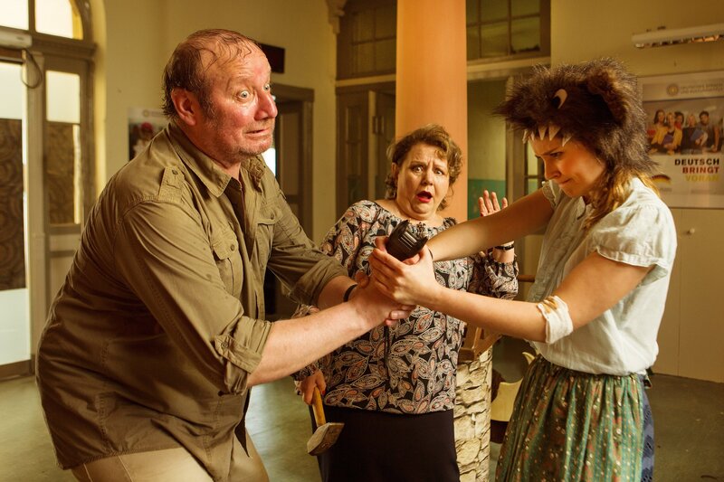 Herr Gmeiner hat einem Mullah den kopflosen Kadaver einer Ziege versprochen. Dr. Eckart hat dem Roten Kreuz sechs Liter Blut versprochen. Es geht ans Eingemachte. Während Dr. Eckart mit Assistenzarzt Haschim an Titus zu scheitern droht (er hat panische Angst vor Spritzen und Blut und entzieht sich dem Aderlass daher), sieht sich Gmeiner außerstande, den institutseigenen Ziegenbock zu schlachten. Die Drecksarbeit muss jemand Hartgesotteneres übernehmen: Margarete. Die herzlose Bibliothekarin greift zu Hammer, Sichel und Taser. Am Ende fliehen beide - Titus und die Ziege - vor ihren Häschern kreuz und quer durchs Institut - und diverse Male auch durch den deutschen Märchenwald, der im Foyer aufgebaut ist. Hier unterrichtet Jördis eine Klasse kisbekischer Mädchen in Grimms Märchen. Die Fabel vom Wolf und den sieben Geißlein bekommt im Durcheinander allerdings einen düsteren Einschlag: Am Ende sind sechs der Mädchen traumatisiert und das siebte getasert.