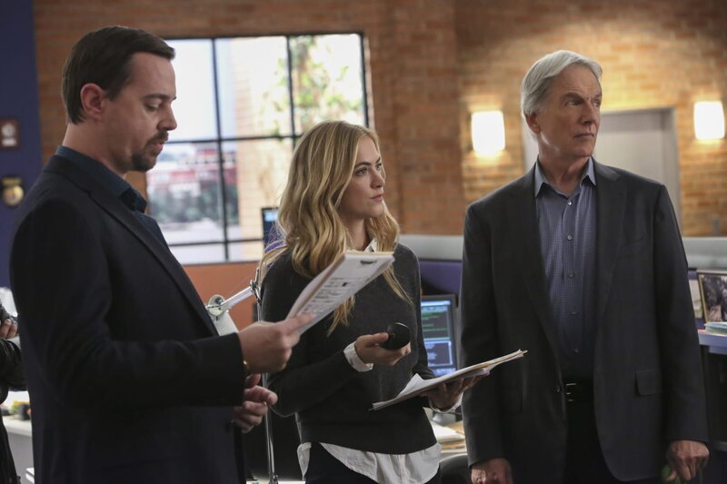 • Angeblich hätte eine fremde Stimme die Joggerin zur Leiche geführt - doch was steckt wirklich dahinter? Ellie (Emily Wickersham, l.) und Gibbs (Mark Harmon, r.) bleiben skeptisch, zudem der Tote ein Verdächtiger in einem Betrugsfall war ...