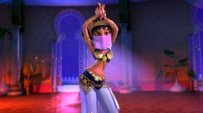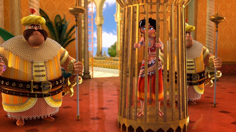 Sherazade wird in einen goldenen Käfig eingesperrt. Dunyazad stellt auch Karim eine Falle, falls er kommt, um seine Freundin zu retten. Aber Karim kommt nicht. Stattdessen erscheint eine Gruppe von Jongleuren und Akrobaten, der Shazaman nicht widerstehen kann. Sherazade begreift, dass die Mitglieder dieser Gruppe ihre Freunde sind: Karim, Morgana, Sindbad und Duban.