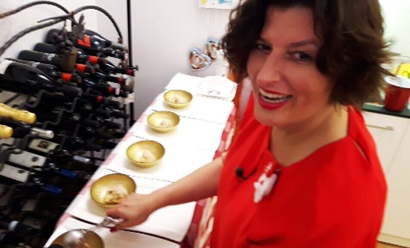 Sandras Menü: Vorspeise: Sternen-Maronen-Ravioli mit Walnuss-Preiselbeer-Pesto und gehobeltem Trüffel. Hauptspeise: Wachtel mit Spinatfüllung und Speckmantel, dazu Kartoffelstampf. Nachspeise: Winterlicher Apfel-Crumble mit Vanillesoße