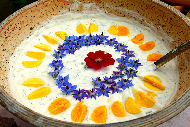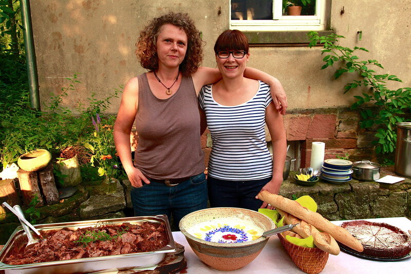 Mitten in der Wetterau, etwa eine Autostunde nördlich von Frankfurt am Main, liegt in historischer Kulisse des Klosters Konradsdorf ein Bio-Bauernhof. Fünf Familien mit zwölf Kindern leben und arbeiten dort in einer Gemeinschaft. Gekocht wird vor allem mit Produkten aus der Region. Auf den Tisch kommen Rote-Bete-Salat, Lammbraten, die traditionelle Grüne Soße mit Kartoffeln und der herzhafte Schmierschelkuchen.