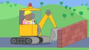 Peppa und Schorsch dürfen einen Gabelstapler fahren - natürlich in Begleitung mit Mama und Papa.
