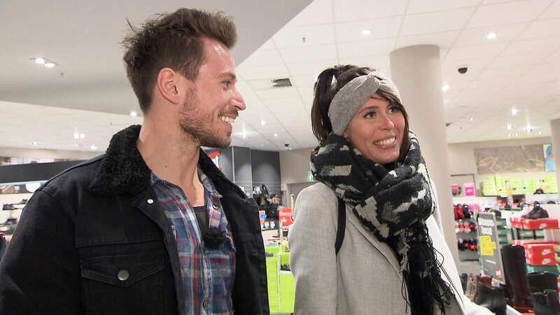 Bachelor Sebastian Pannek und Isabel sind auf der Suche nach den passenden Schuhen.