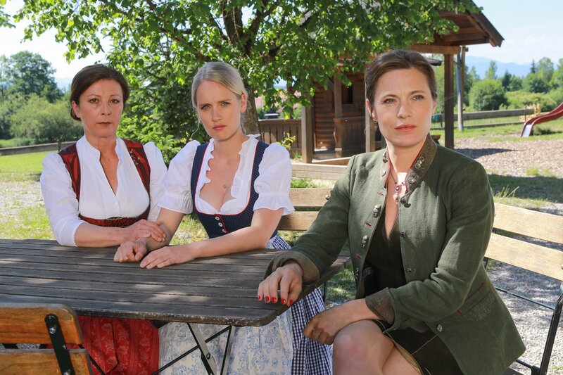 Während der Vorbereitungen eines Trachtenfestes ist ein Mord passiert. Die Vereinsmitglieder Resi Bierbichler (Bettina Redlich, l.), Sonja Amann (Claudia Hinterecker, M.) und Elisabeth Rieder (Susanne Berckhemer, r.) sind schockiert.