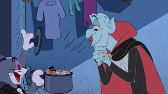 Tom (l.), Jerry (2.v.l.), Count Dracula (r)