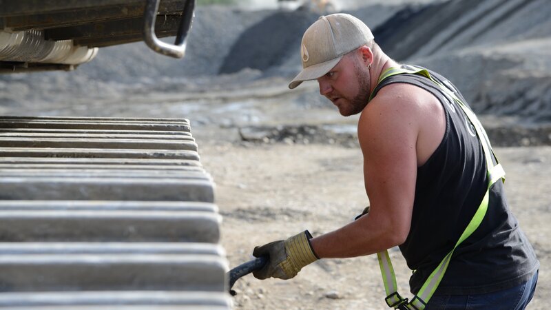 • Brennan Ruault cleaning the excavator tracks.