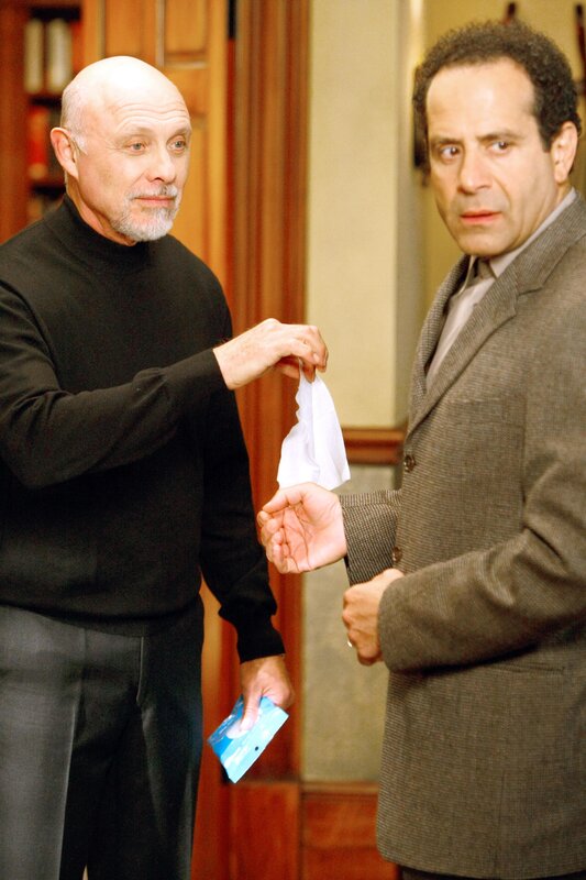 "Monk", "Mr. Monk kauft ein Haus." Monk steht kurz vor dem Nervenzusammenbruch, da ein Mädchen in seiner Nachbarschaft unablässig auf dem Klavier übt und dem hochsensiblen Detektiv somit jegliche Lebensfreude raubt. Monk sucht bei Stottlemeyer nach einer Aufgabe, die ihn von zu Hause fernhalten könnte. Der Captain beschäftigt sich mit dem Unfalltod eines alten Mannes, der in seinem Haus die Treppe heruntergefallen war. Am Tatort interessiert sich Monk vor allem für das Haus, das zum Verkauf frei steht und erfreulich dicke Wände hat. Im Bild (v.li.): Hector Elizondo (Dr. Neven Bell), Tony Shalhoub (Adrian Monk).