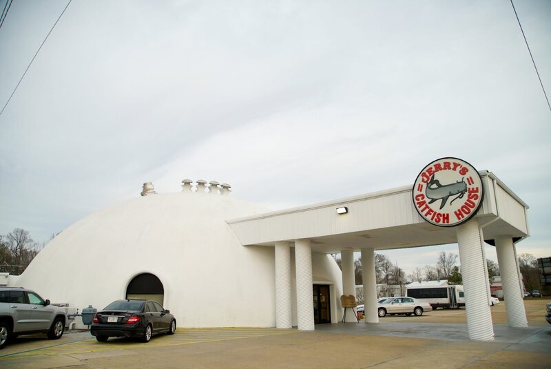 • Das „Jerry’s Catfish House“ in Florence, Mississippi, ist ein einzigartiges kuppelförmiges Restaurant, das als „The Igloo“ bekannt ist und für seinen frittierten Wels und seine Hushpuppies berühmt ist.