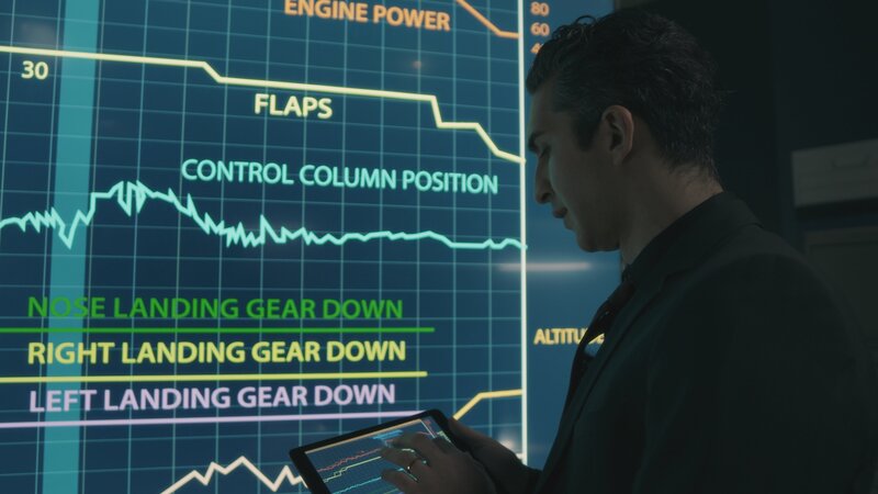 REENACTMENT - Die Ermittler des Interstate Aviation Committee (IAC) bestätigen, dass die Piloten des Flydubai-Flugs 981 beim ersten Landeanflug auf einen Windscherungsalarm reagierten. (Cineflix/James Griffith)