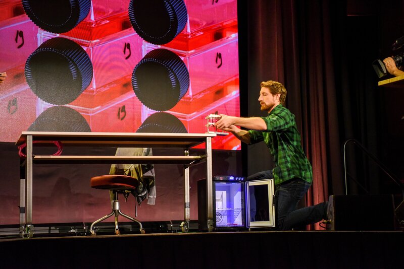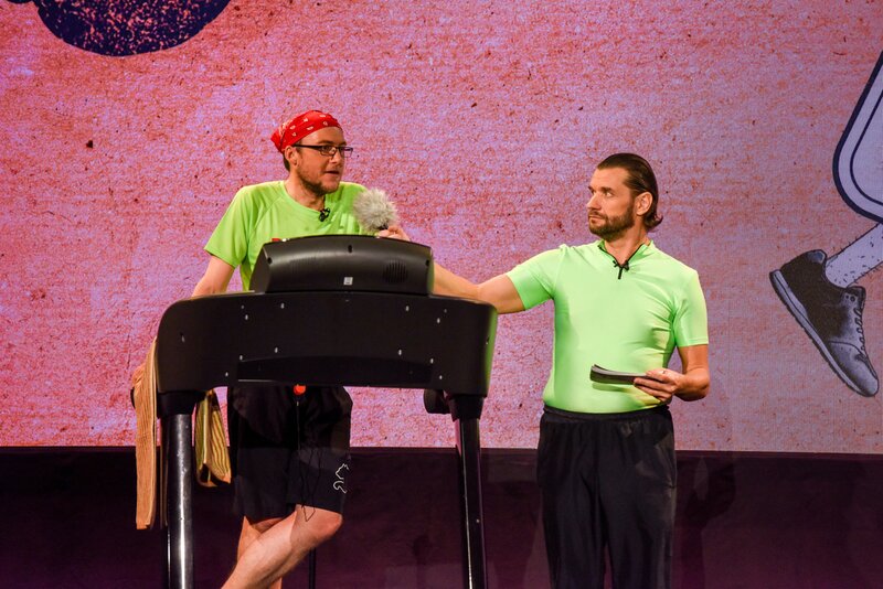 Die Kabarett-Wissenschaftler wollen demonstrieren, wie der Klimawandel funktioniert und produzieren dafür frisches, fabrikneues Kohlendioxid. Zudem begrüssen sie zwei Profis im Ein- und Ausatmen.