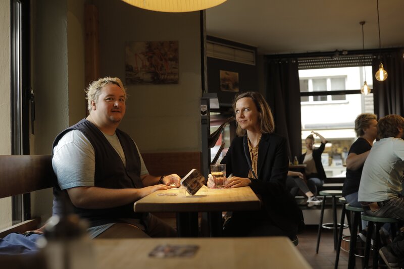 • Malte (Daniel Zillmann) und Anita (Nadja Becker) treffen sich in Maltes Stammkneipe, nachdem sich Anita mit ihrem Mann gestritten hat.