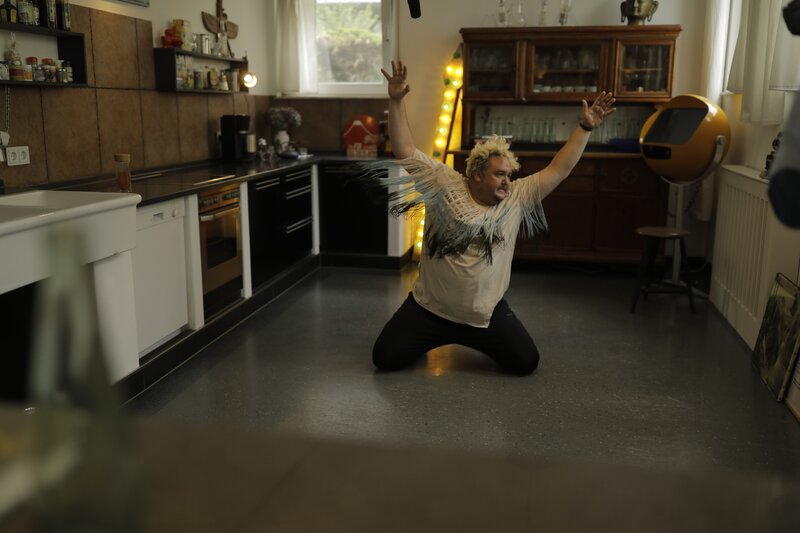 • Malte (Daniel Zillmann) übt sich im spirituellen Ausdruckstanz, um die Kraft für seinen Kinderwunsch zu wecken.