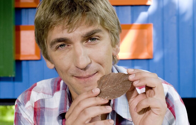 Fritz Fuchs (Guido Hammesfahr) mit einem selbst gemachten Schokoladenblatt.