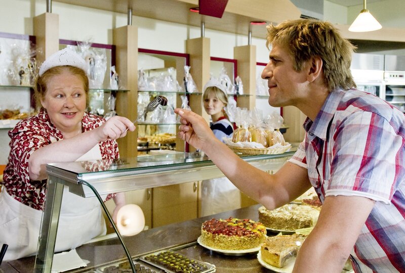 Wie in Kindertagen, Fritz Fuchs (Guido Hammesfahr, r.) darf die Pralinen von Konditorin Fabien (Ulrike Bliefert, l.) probieren.