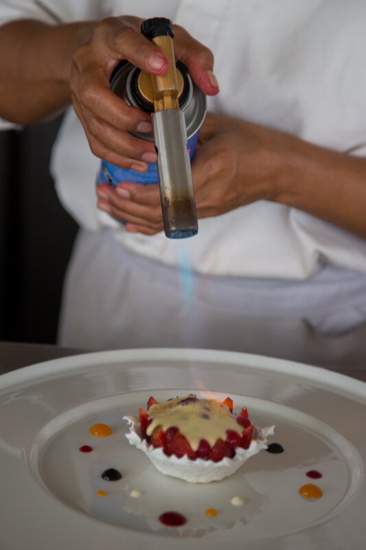 Volkers Menü: Vorspeise: Gefüllte Wiesenchampignons mit Wingertsalat und Birnendressing Hauptspeise: Lamm-Ossobuco mit Rotwein-Balsamico-Schalotten und selbstgemachte Rote-Bete-Pappardelle Nachspeise: Crème Brûlée mit geeister Beerenmousse...