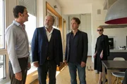 Die Schmuckdesignerin Melanie Schramm (Sophie Melbinger, l.) berichtet den Kommissaren Richard Voss (Jan-Gregor Kremp, r.) und Annabell Lorenz (Stephanie Stumph), dass sie eine kurze Affäre mit dem ermordeten Starfriseur hatte, die er vor wenigen Wochen abrupt beendet hatte.