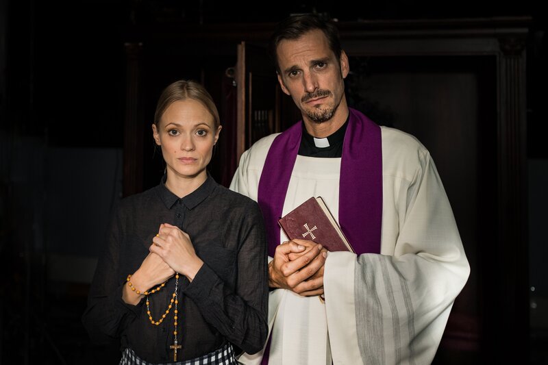 Es muss doch einen Weg geben, die Sünderin (Mavie Hörbiger) aus dieser furchtbaren Ehe rauszubekommen. Der Priester (Max von Thun) hat da eine Idee.