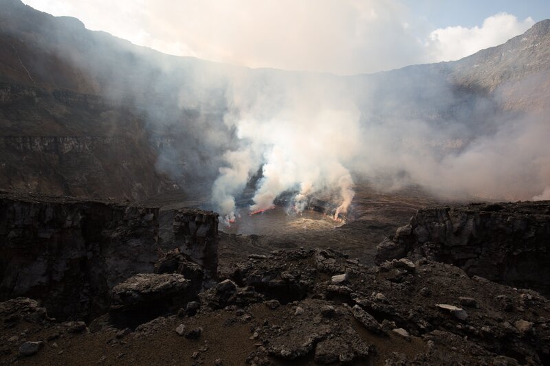 CGI of Earth's atmosphere with volcanic plumes streaming.