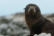 Neuseeländische Pelzrobben auf den Felsen in Kaikoura, einer der reichsten Meeresgründe der Welt, ein Naturparadies.