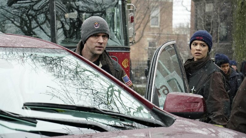 Chicago Fire Staffel 6 Folge 22 Sie suchen nach einem verunfallten Jungen: Miranda Rae Mayo als Stella Kidd, Christian Stolte als Mouch, Jesse Spencer als Matthew Casey, Yuri Sardarov als Otis, Monica Raymund als Gabrielle Dawson, Kara Killmer als Sylvie Brett