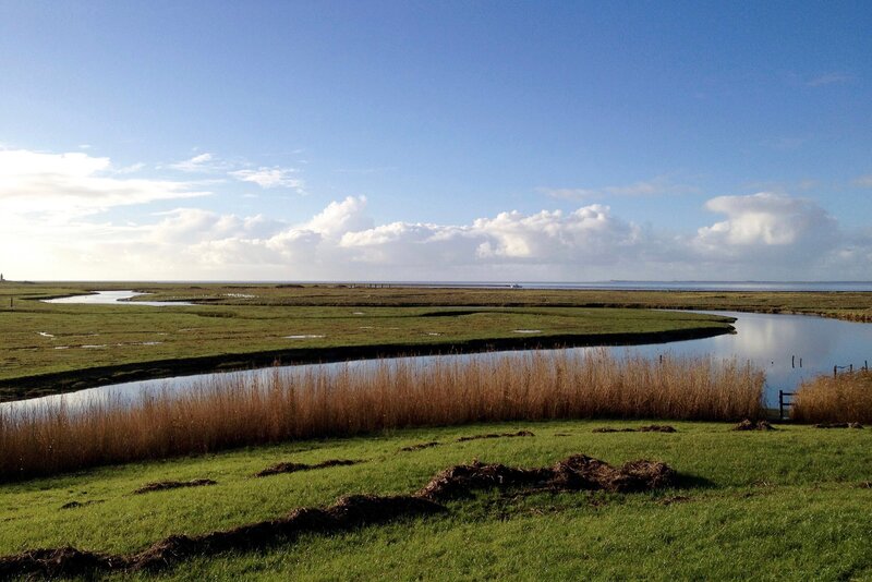 Die Hallig Langeneß wird durchzogen von Gräben und Prielen. Weitere Fotos erhalten Sie auf Anfrage.
