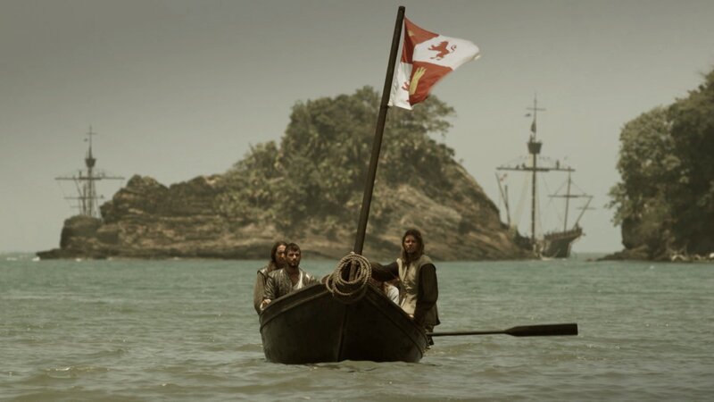 • Kolumbus (Darsteller unbekannt) landet in der neuen Welt.