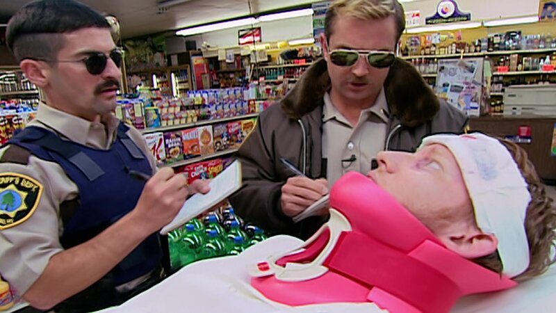 L-R: Deputy Travis Junior (Robert Ben Garant), Lieutenant Jim Dangle (Thomas Lennon), Keith, the Clerk (A.D. Miles)