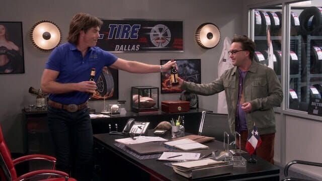 • L - R: Jerry O'Connell als George Cooper, Jr., Johnny Galecki als Leonard Hofstadter