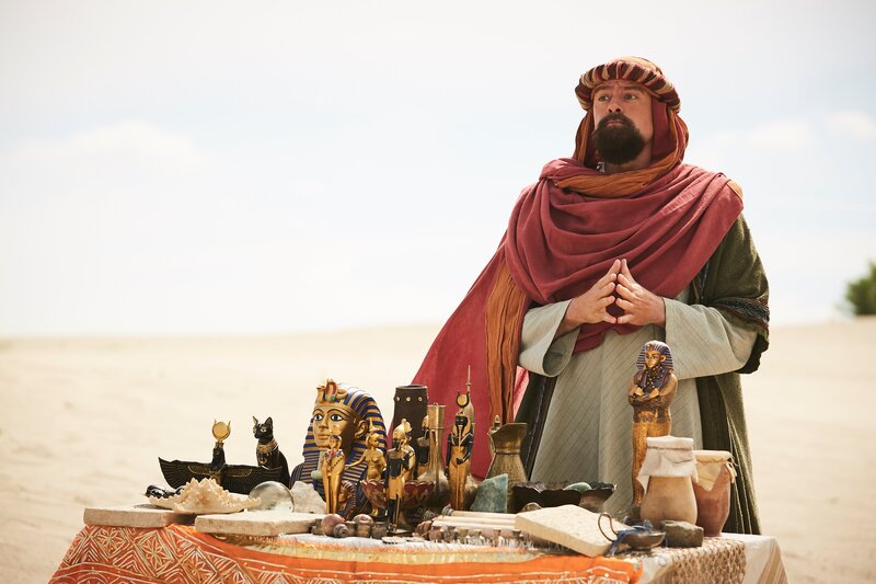 Ein ägyptischer Trödelhändler (Max Giermann) wartet begierig auf Wüsten-Kundschaft.Bild: © ZDF/Kristof Galgoczi Nemeth
