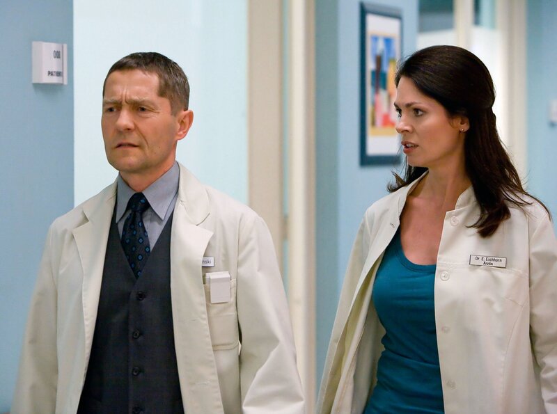 Der pensionierte Beamte Adam Hermann, Patient von Dr. Kaminski, leidet an Blasenkrebs. Er hat eine günstige Prognose, aber es muss eine neue Blase aus einem Teil seines Dünndarmes gebildet werden. Diese Operation fehlt Elena Eichhorn in ihrem Facharzt-Katalog. Kaminski will sie unter seiner Aufsicht operieren lassen. Adam Hermann lehnt dies ab und entpuppt sich als Chauvinist - Frauen gehören an den Herd. Als Kaminski insistiert, verlässt dieser wütend die Klinik. Eine Schmerzattacke zwingt Hermann wieder zurück. Kaminski macht seinem Patienten klar, dass der Eingriff nicht länger hinausgezögert werden darf. Allerdings kann Kaminski nicht selbst operieren. Er präsentiert dem verdutzten Hermann seine zitternden Hände und erklärt ihm, unter gelegentlichen "Anfällen" zu leiden. Elena ist überrascht, als Kaminski ihr die Einverständniserklärung von Hermann präsentiert, den sie dann mit Bravour operiert. Als Kaminski seinen Bluff eingesteht, bricht die geballte Empörung über ihn herein. Mit der ihm eigenen Art will Kaminski diesen "Sturm im Wasserglas" vorbeigehen lassen, doch dann kommt es zu Komplikationen bei Adam Hermann. Kathrins Entbindungstermin ist inzwischen längst verstrichen. Sie nimmt es gelassen, während Freddy fast vor Aufregung und Sorge vergeht - wie ein richtiger Vater - was Martin und Roland amüsiert. Doch Freddy kümmert sich unbeirrt rührend um Kathrin, aber alle Szenarien für die optimale Geburt müssen über den Haufen geworfen werden. Kathrin wird mit dem Rettungswagen zur Entbindung gebracht. und andere.