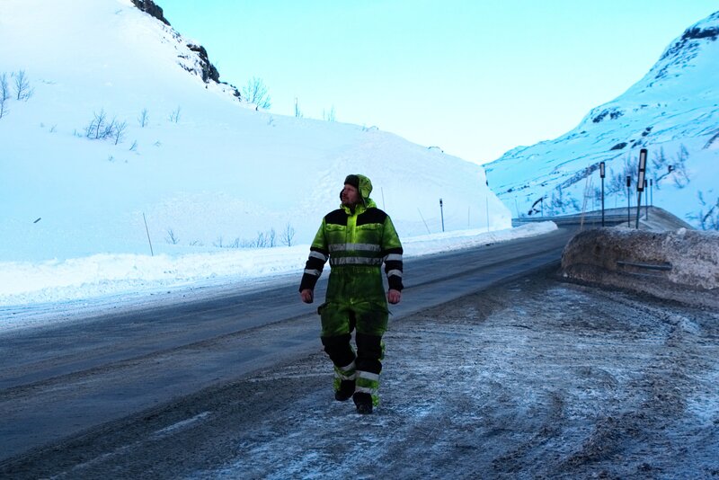 Im Norden Norwegens haben Jo Roger und sein Sohn Ole Henrik alle Hände voll zu tun, ein Räumfahrzeug aus einem Straßengraben zu hieven. Erschwert wird die Arbeit durch einen starken Schneesturm.