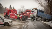 Overhalla, Norway - Jo Roger next to the overturned plow truck.