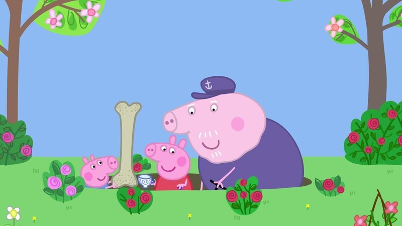 Peppa und Schorsch helfen Opa Wutz, einen nagelneuen Teich für seinen Garten auszugraben. Während sie buddeln, finden Peppa und Schorsch einen vergrabenen Schatz. Sie bringen ihn zu Papa Löffel ins Museum, um ihn untersuchen zu lassen. Im Gegenzug hilft dieser ihnen beim Fertigstellen des Teiches!...