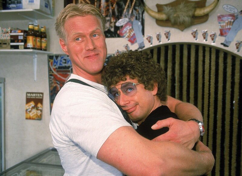 Harry (Norbert Heisterkamp, l.) ist überglücklich und bedankt sich bei Atze (Atze Schröder): Endlich klappt es mit Jacqueline wieder im Bett!