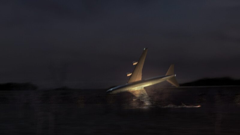 • David Miller (Rob Trick, r.) und seine Kollegen untersuchen die riesige Furche, die die koreanische Maschine mit ihrer Tragfläche  beim Absturz verursacht hatte und hoffen auf Hinweise für den Grund des Absturzes ...