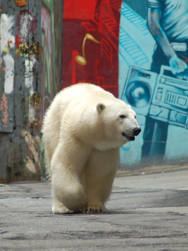 • White Female Polar Bear in downtown City of Vancouver, BC.