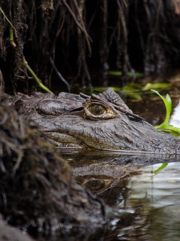 • A caiman leaves his den in Bocas Del Toro, Panama