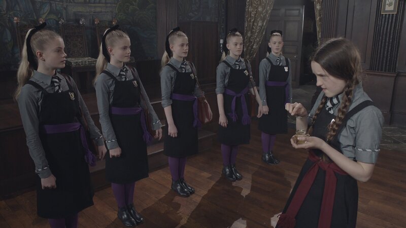 Mildred, Edith und Maude wollen den wertvollen Grundstein aus Sybilles Zimmer holen und ihn heimlich an seinen Platz in der großen Halle zurückstellen. Aber der Stein ist verschwunden. Die Einzige, die noch von dem Stein wusste, ist Esther. Als sie in ihr Zimmer kommen, erwischen sie sie bei der Herstellung eines Klon-Zaubertranks. Esther will sich selbst verdoppeln. Das ist verboten. Unter Ediths Aufsicht soll Esther den Trank wegschütten. Doch als Mildred und Maude weg sind, um weiter nach dem Grundstein zu suchen, ermuntert Edith Esther, den Zaubertrank fertig zu mischen, da sie selbst Interesse daran hat. Allerdings gibt Edith, die Esther zur Hand geht, wohl nicht die richtigen Fische zum Trank dazu, sodass eine recht freche Klon-Esther zum Leben erweckt wird. Sie sieht zwar aus wie Esther, hat aber nur Dummheiten im Sinn. Als sie noch weitere Klone von sich herstellt, ist das Chaos perfekt. Zu allem Unglück hat die Kunstlehrerin Frau Schimmel auch noch Frau Edel, die Mutter von Esther und Sybille, gebeten, in die Schule zu kommen, da Sybille seit dem Feuer unter Heimweh leidet. Frau Graustein ist in heller Aufregung, da Frau Edel ein wichtiges Mitglied des Zauberrates ist. Sollte sie erfahren, dass der Grundstein spurlos verschwunden ist, könnte das die Schließung der Schule zur Folge haben. Mildred und ihre Freundinnen müssen den Stein rechtzeitig finden und die echte Esther herausfiltern, damit sie die Klone verschwinden lassen können. Ob sie das alles schaffen?