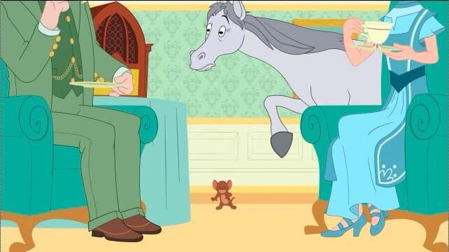 Tom und Jerry helfen einem entlaufenen Rennpferd wieder auf die Beine.