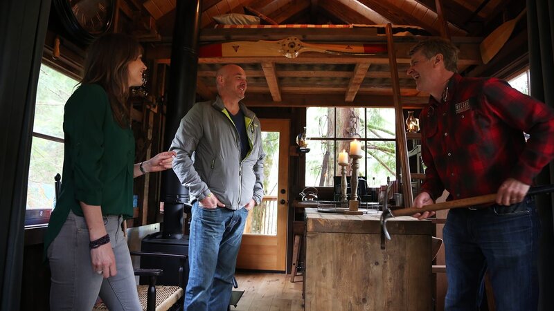 Leben, wo andere Urlaub machen! Diesen Traum haben sich Steve und Tracy auf Hawaii erfüllt - mit Mangobäumen und Bananenstauden im eigenen Garten. Das Ehepaar lebt mit seinen drei Kindern auf der Insel Kauai, dort bauen Pete Nelson und sein Handwerker-Team für die Familie ein Freizeitdomizil im Kahuna-Style. Darin können die Naturliebhaber in bequemen Hängesesseln nach Herzenslust relaxen. Aamion und Daize haben dagegen im Geäst schon ganze Arbeit geleistet. Ihr Baumhaus wird mit stylishen Extras und einer Aussichtsplattform aufgepeppt - dabei greift der "Treehouse Master" den Surf-Profis gerne unter die Arme.