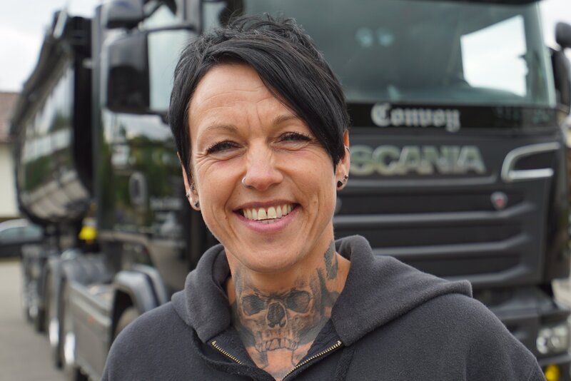Monika Notter steuert ohne ihren treuen Begleiter "Aick" die erste Baustelle an. Der Vierbeiner ist kürzlich verstorben, was sie betrübt. Kraftfahrer Markus Dissertori muss derweil improvisieren.