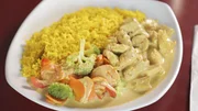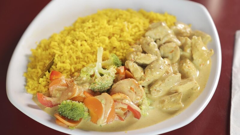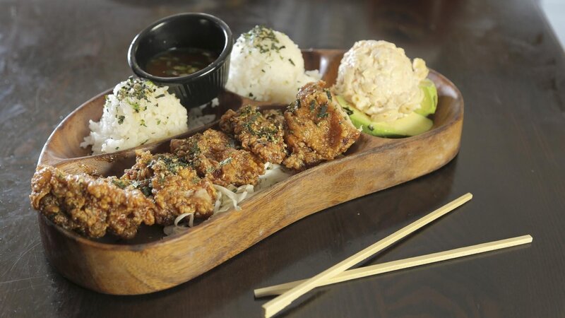 The Garlic Furikake Chicken as served at Broke Da Mouth Grindz in Kailua-Kona, Hawaii, as seen on Diners, Drive-Ins and Dives, Season 28.